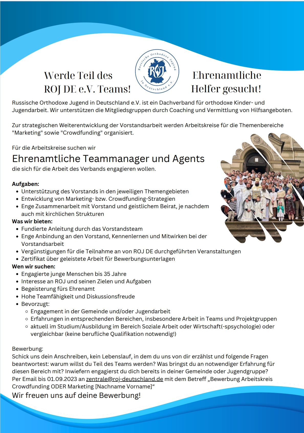 Du wolltest dich schon immer für die orthodoxe Kinder- und Jugendarbeit in Deutschland stark machen, weißt aber nicht, wo du anfangen sollst? Du begeisterst dich für Projekte, die Leitung von Teams und generell die Vereinsarbeit? Dann ist das deine Gelegenheit!