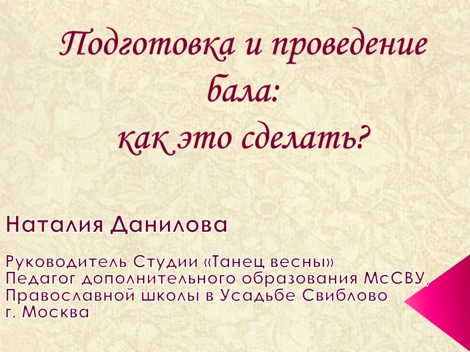Руководитель Студии «Танец весны», Педагог дополнительного образования МсСВУ, Православной школы в Усадьбе Свиблово г. Москва