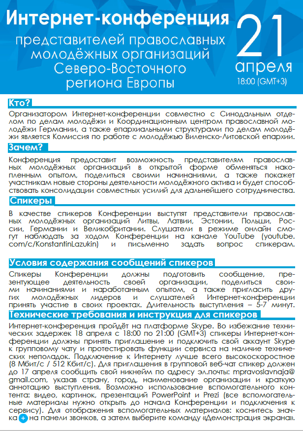 С докладами выступили Алина Титова, Русская Православная Диакония «Доброе Дело» (Германия), Владимир Берхин, Фонд «Предание» (Россия), Екатерина Метлева, добровольческая организация «Милосердие» (Россия).